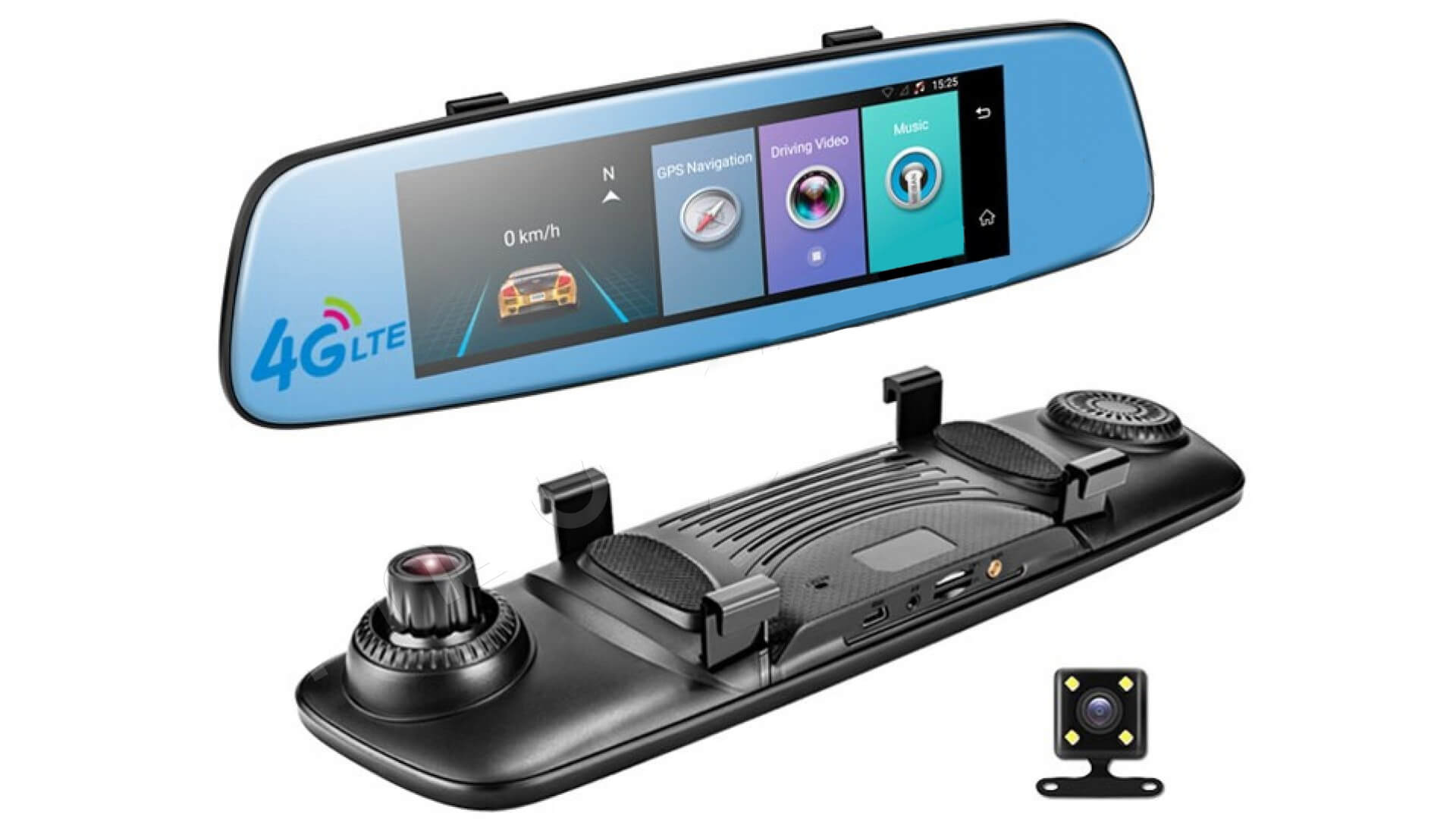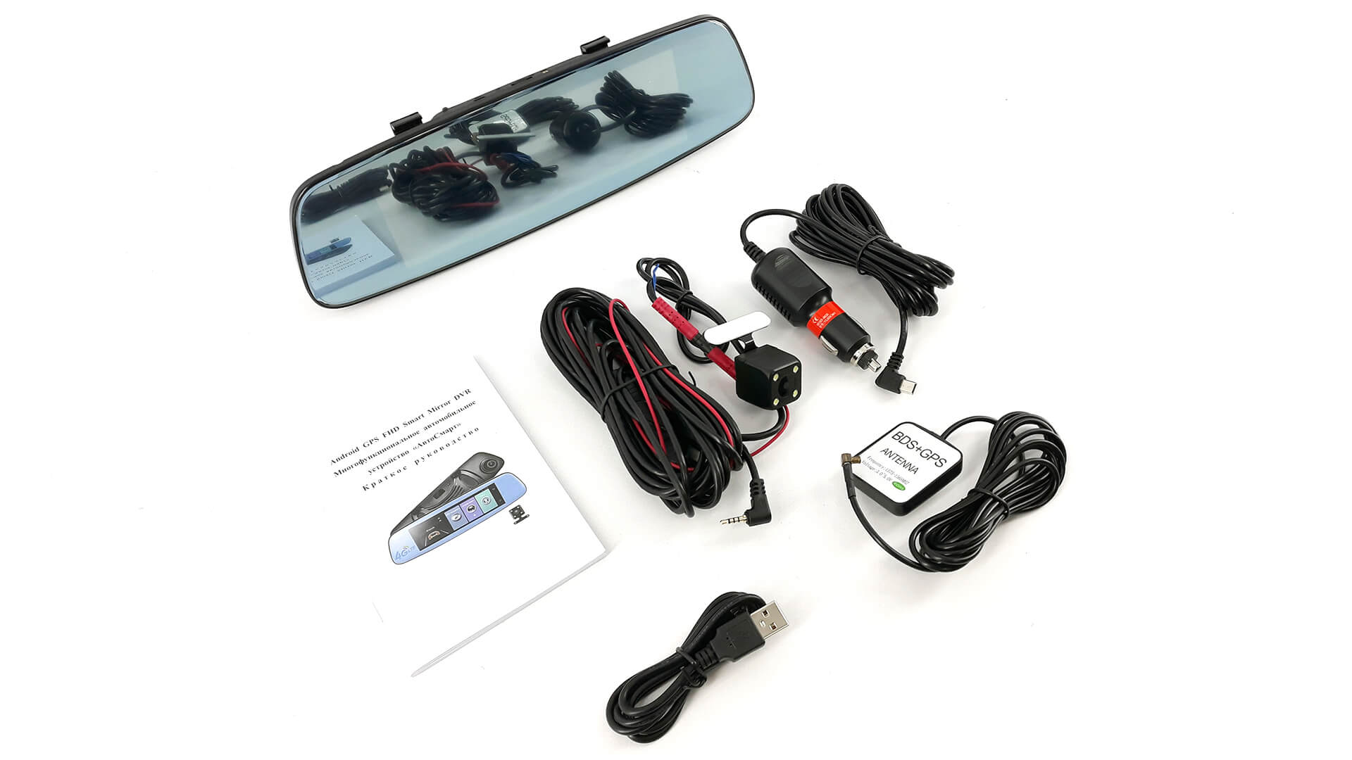 Двухканальный видеорегистратор смарт зеркало (накладка) / Дисплей 7.84" IPS 1280×400 / Основная камера Full HD 1920x1080P, задняя камера 640x480P + парковка / Угол обзора 140° / G-Sensor / ОС Android 5.1 / Процессор MediaTek MT6735 1.3GHz / Память ОЗУ 1GB + ПЗУ 16GB / Сети 4G LTE, 3G WCDMA, 2G GSM / GPS-навигатор / Bluetooth hands-free / WiFi / FM-трансмиттер / Google Play Market