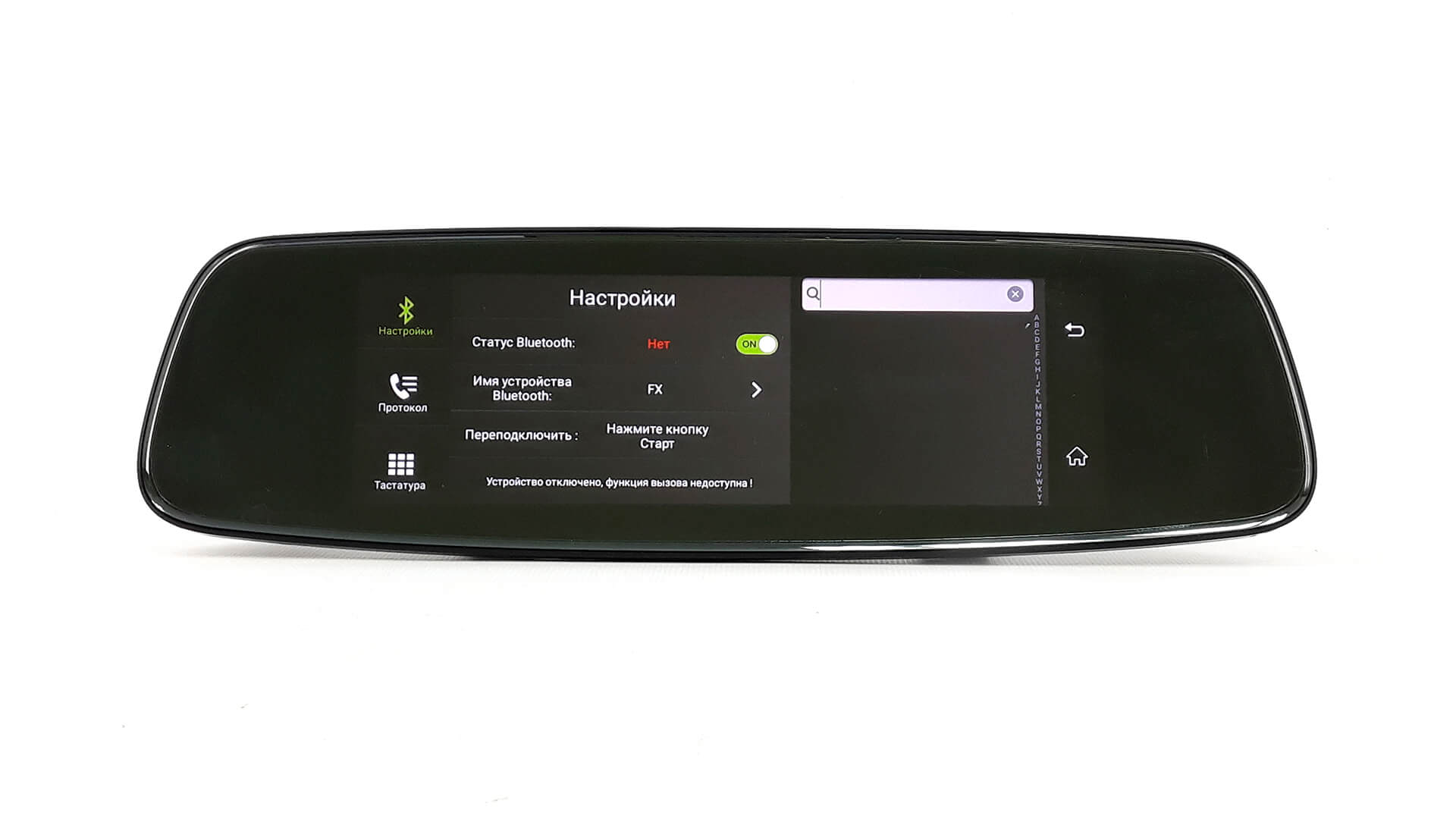 Phisung e06 оснащено FM-трансмиттером, который позволяет передавать музыкальные композиции с устройства на автомобильную магнитолу, посредством FM-диапазона. Никакой сложности в настройке нет. Необходимо выбрать любой канал, на смарт-зеркале, нажать кнопку «Открыть», после чего необходимо настроить автомобильную магнитолу на этот же диапазон.