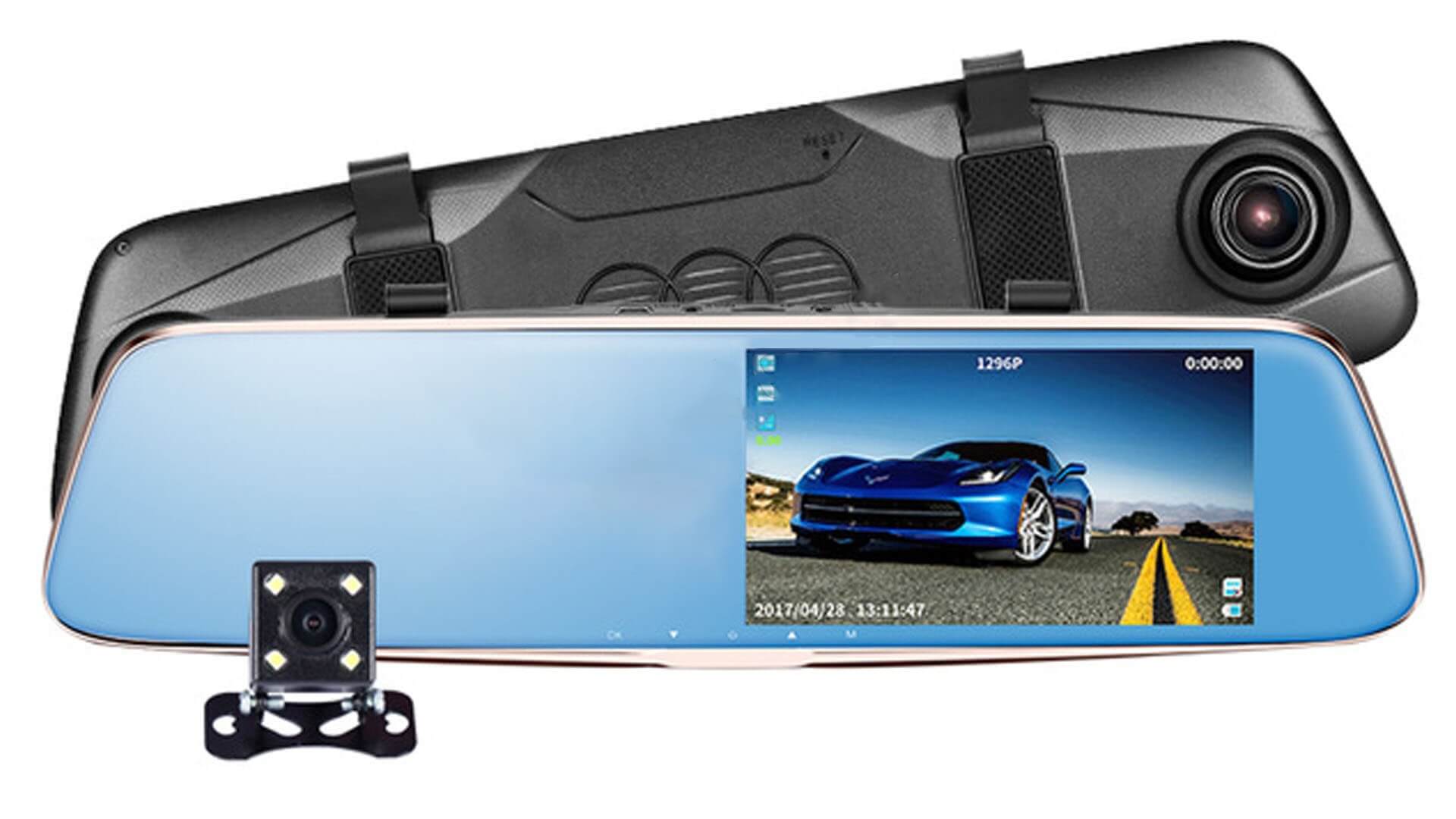 Зеркало со встроенным видеорегистратором T28 — 5.0 дюймовый экран, съемка видео Full 1920x1080p, угол обзора 170 градусов, уникальная ночная съемка, камера заднего вида с разметкой парковки, дисплей 5″, одновременная запись видео на переднюю и заднюю камеру, система ADAS, LDWS — система предупреждения выезда с полосы разметки на дороге, FVMA — предупреждение о автомобиле впереди.
