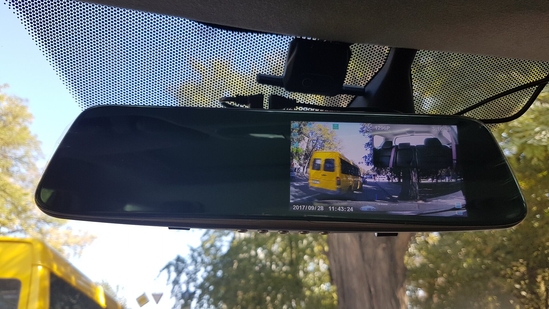 Видеорегистратор зеркало Phisung t28 - образец видео днём