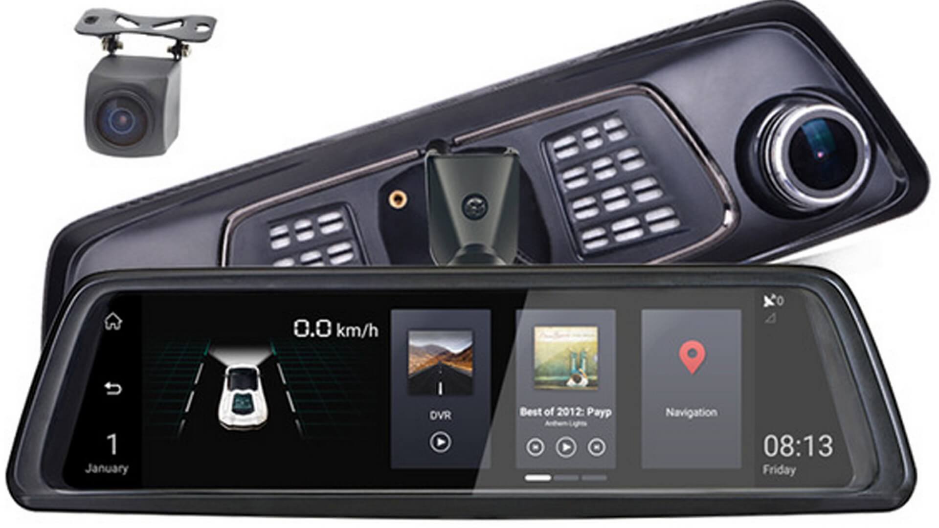 Зеркало со встроенным видео регистратором, система ADAS (контроль полосы движения, расстояние до впереди идущего автомобиля), OS Android 5.1, IPS экран 10″, 2 камеры, 4G/GSM, Wi- Fi, Bluetooth, GPS навигатор с картами Украины.